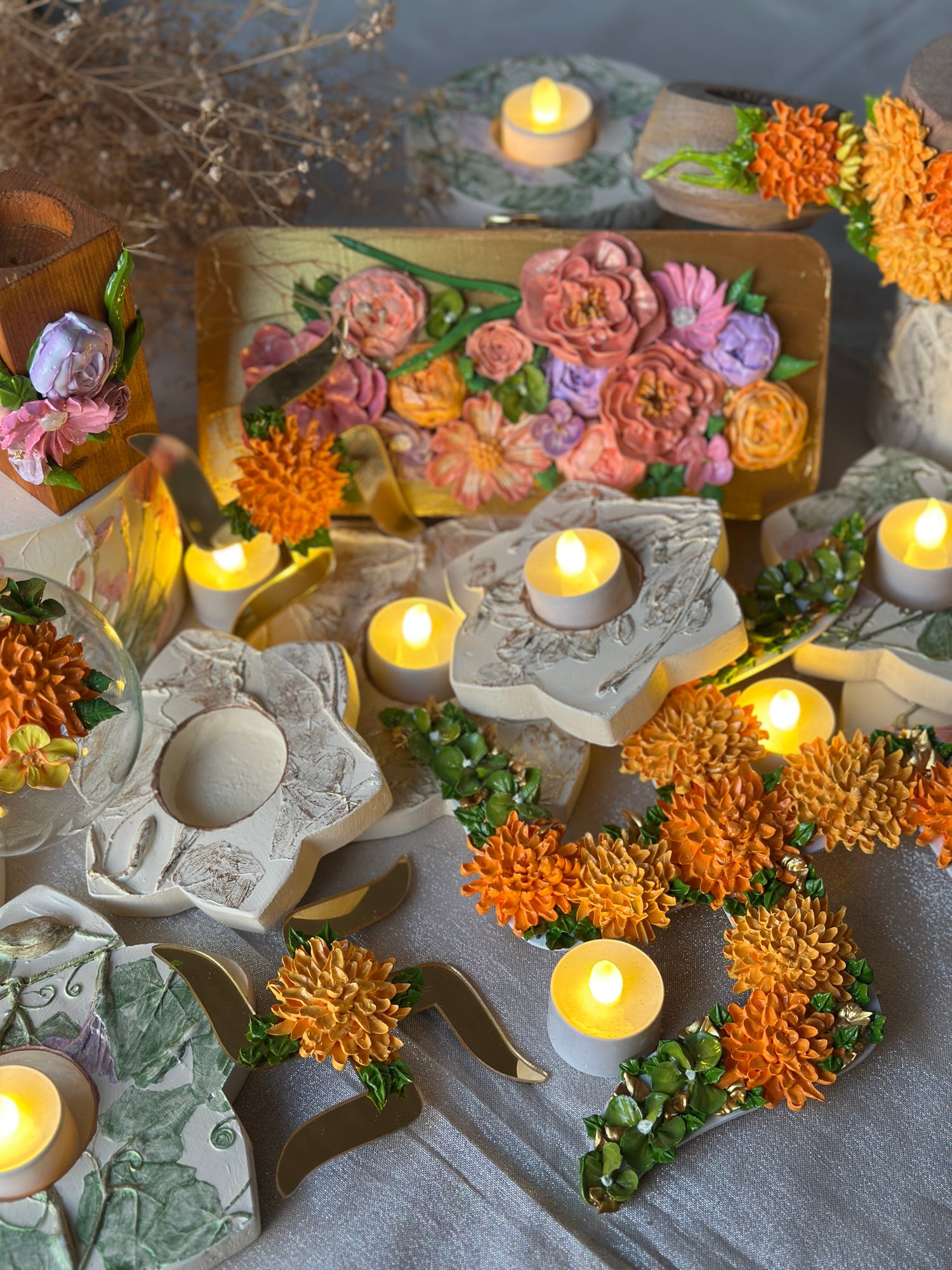 Celebrate the season with Little Miss Makes’ Festive Collection—where tradition meets artistry. Inspired by Indian florals and vines, each handcrafted product is designed to bring shimmer, warmth, and meaning to your home. From glowing lights to floral accents, these one-of-a-kind creations are made to brighten your celebrations, year after year.