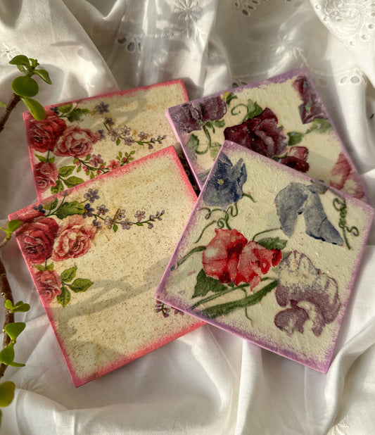 Decoupage is where my practice began, and it’s a technique I’ve been working with for over a decade. It involves decorating objects by carefully layering paper elements onto their surfaces, building depth through composition, sealing, and finishing until the imagery feels almost painted on. While the process follows a series of steps, it still leaves room for play—through colour, placement, and how the surface gradually comes together.