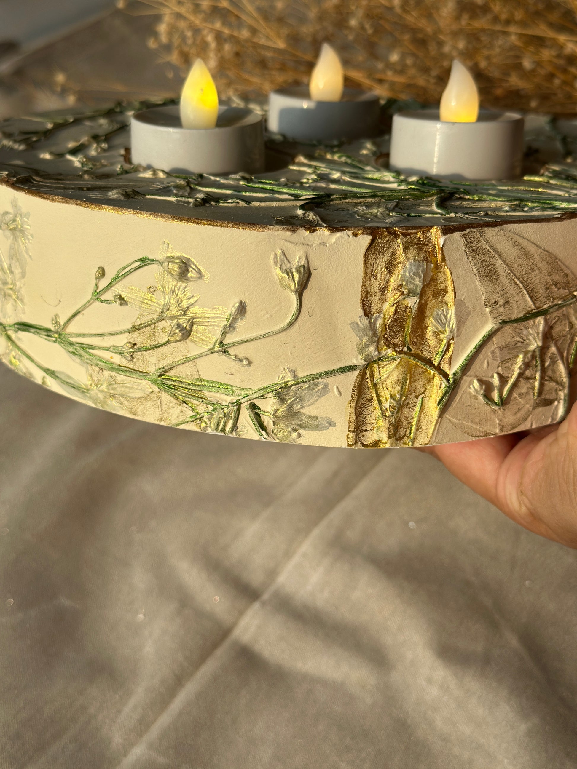Created through the botanical casting technique with delicate Ivy floral impressions, and hand-painted to shimmer, this statement product embodies both timeless elegance and powerful presence. Perfect as a festive centrepiece, it’s designed to shine through every season and celebration.
