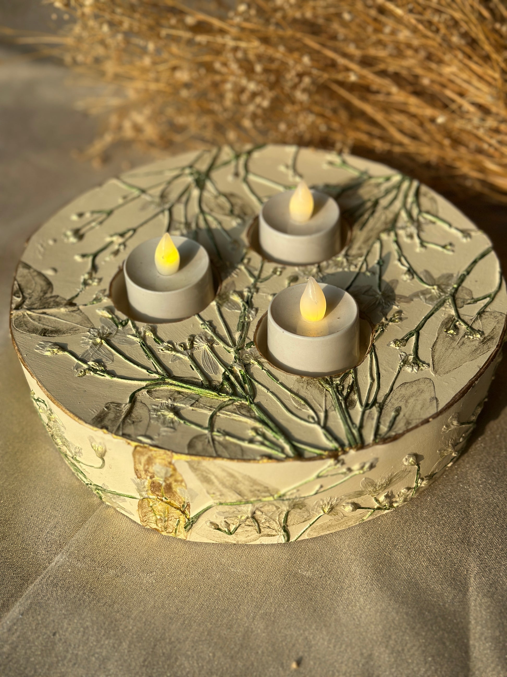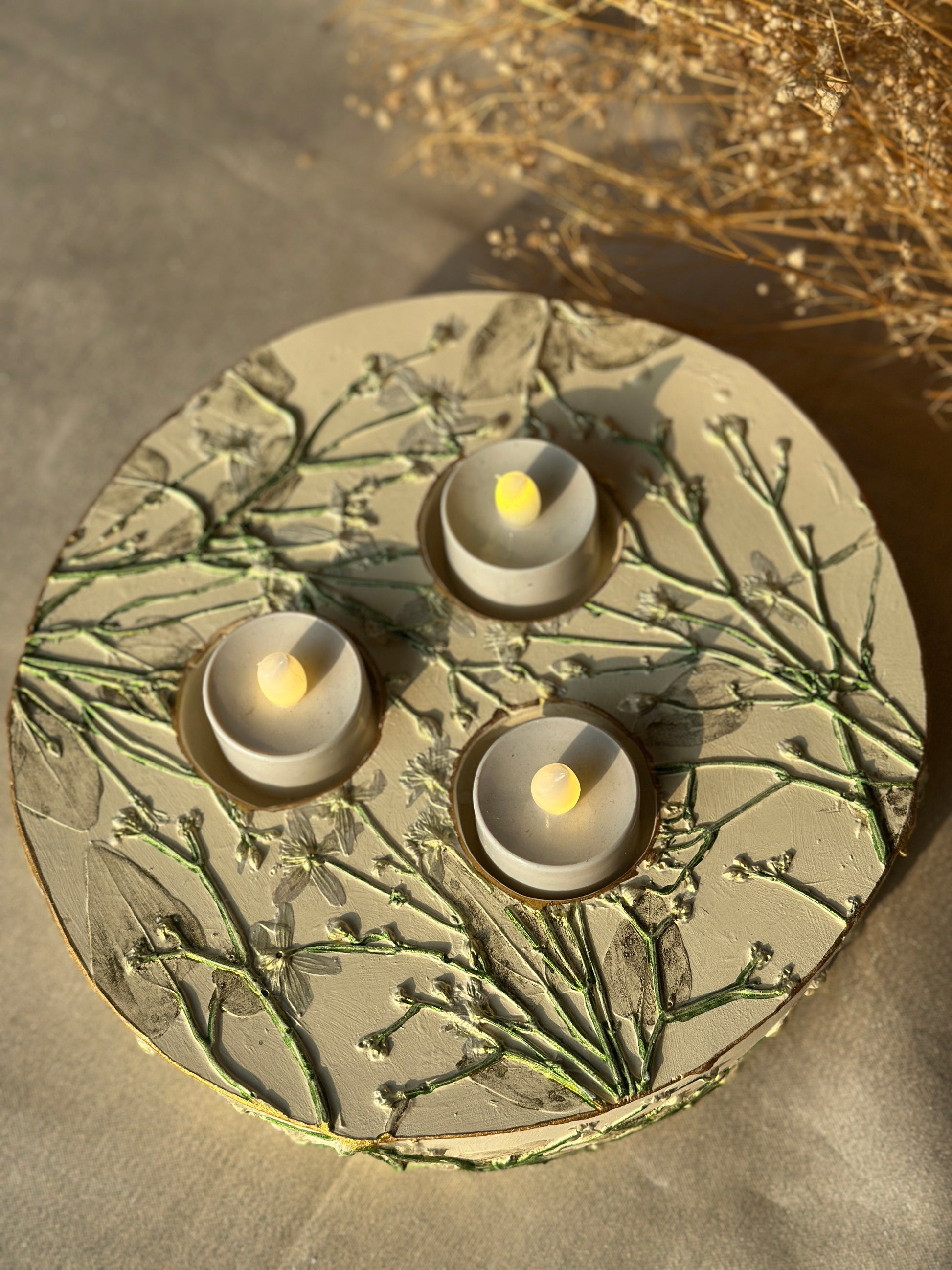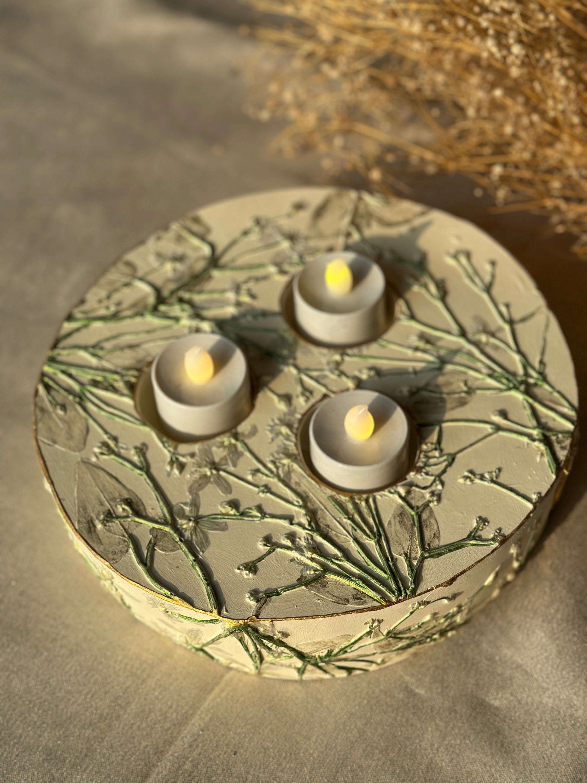 - Each piece is handmade using a unique Botanical Casting technique, capturing delicate impressions of real plants. Every product is one-of-a-kind and crafted with love.