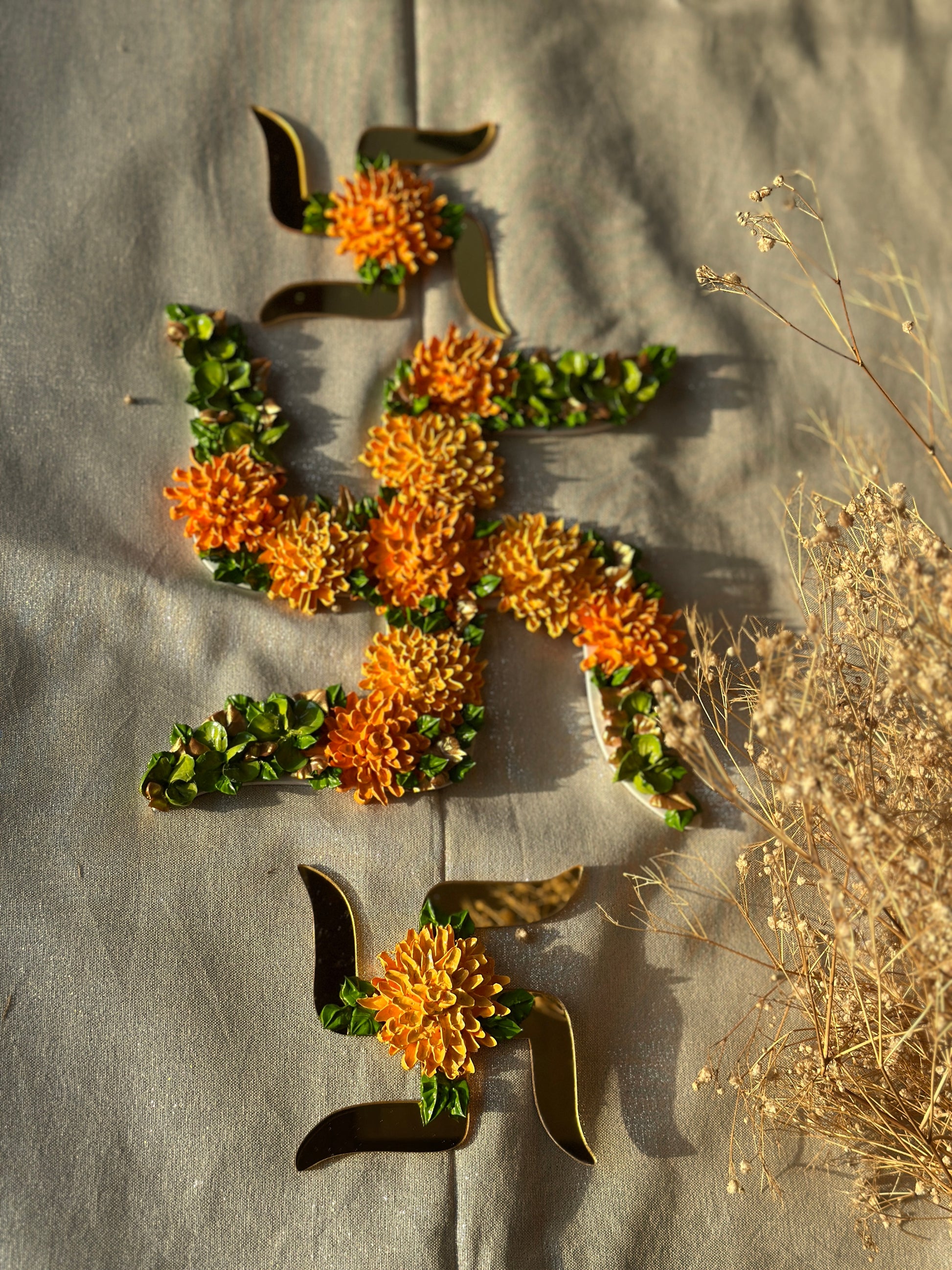 Bored of the generic plastic rangolis in the market? So was I—and that’s how the Swastik Rangoli came to life. Hand-piped with vibrant Genda Phool florals in 3D acrylics, this product turned out even more beautiful than I had imagined. It blends tradition with artistry, while bringing warmth, depth, and joy to your home.